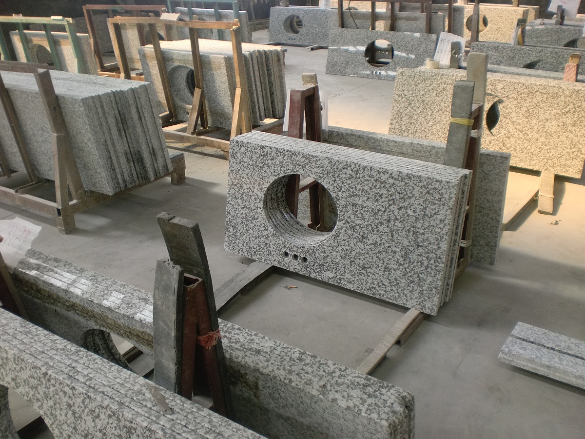 c) dalles, dessus de meuble-lavabo: 30-50 pcs emballés dans des caisses en état de navigabilité, chaque couverture de surface avec un film PE