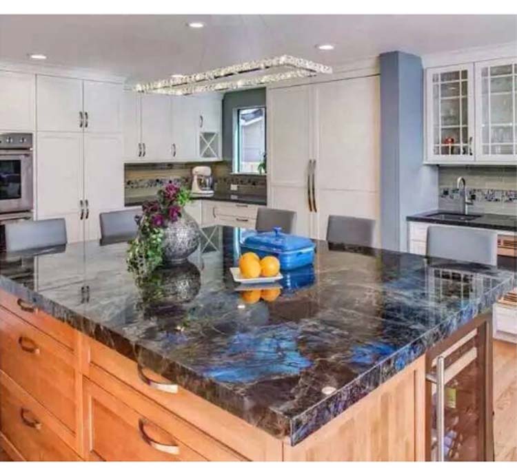 Granite Bleu Labradorite convient particulièrement aux plans de travail, monuments, mosaïques, applications extérieures - murs et planchers intérieurs, fontaines, piscines et autres projets de conception.