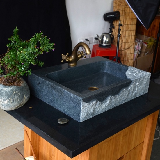 bassin basaltique noir carrépour l'utilisation de la salle de bains et de l'aire de lavage publique. sa beauté simple réside dans l'aspect naturel. c'est une superbe recherche de salle de bain et aire de lavage.